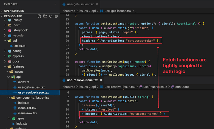 The next problem is that our fetch functions are tightly coupled to the authorization mechanism.